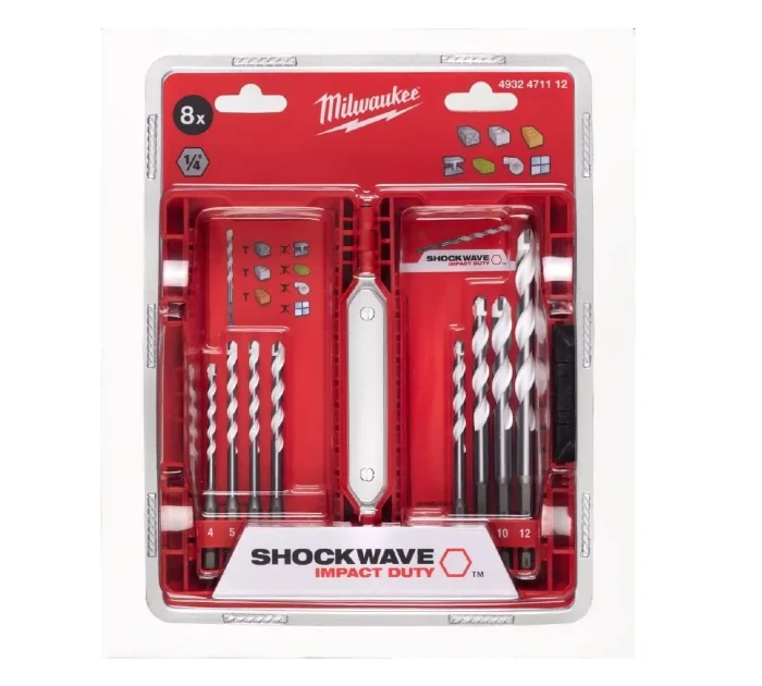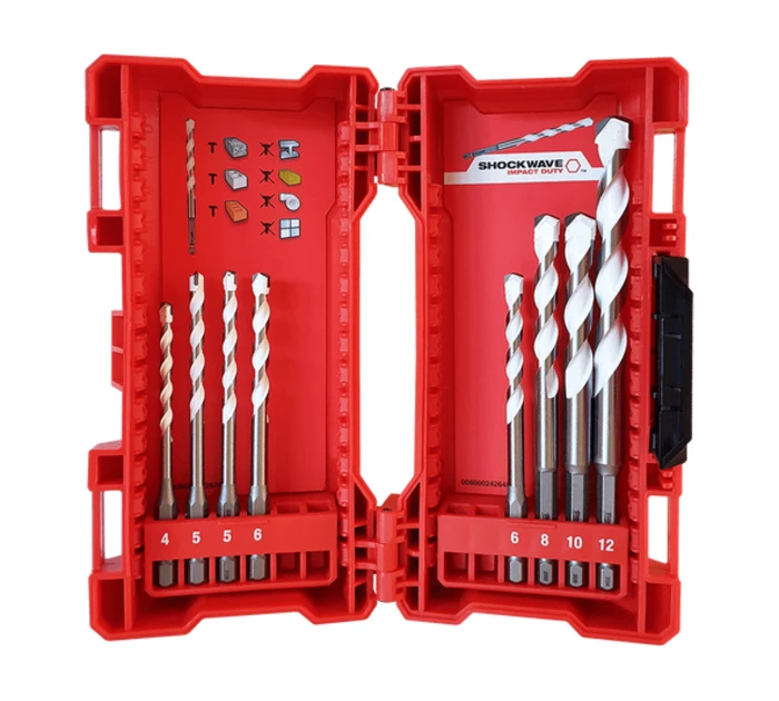 El estuche de brocas multimaterial Shockwave™ de Milwaukee incluye 8 piezas ideales para perforar con precisión distintos materiales como ladrillo, metal, madera o cerámica.