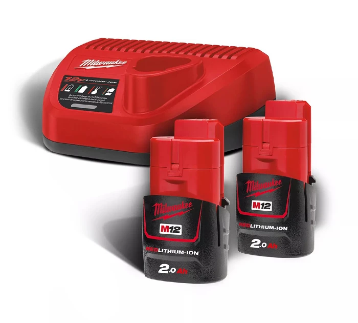 - 2 baterías Milwaukee M12™ REDLITHIUM™ 2.0Ah