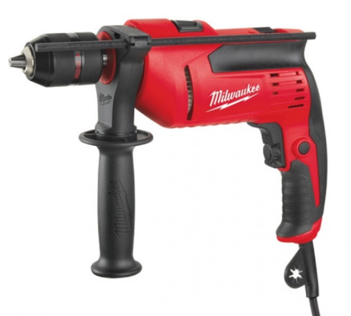 Taladro percutor Milwaukee PD705 de 705W de potencia, con portabrocas automático de 13mm, reversible y diseño compacto. Tiene una velocidad máxima de 3000rpm y velocidad varaible-